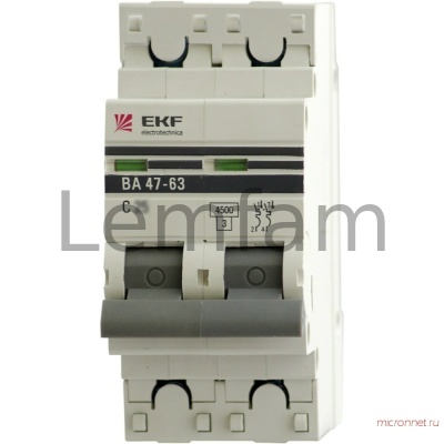 Выключатель автоматический двойной EKF ВА 47-63 63A в