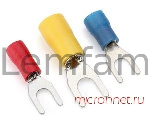 Клемма вилочная под М4 синяя в