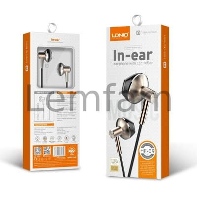 Наушники LDNIO HP09 Вкладыши с микрофоном 3.5 мм метал.корп. 125м Черный в