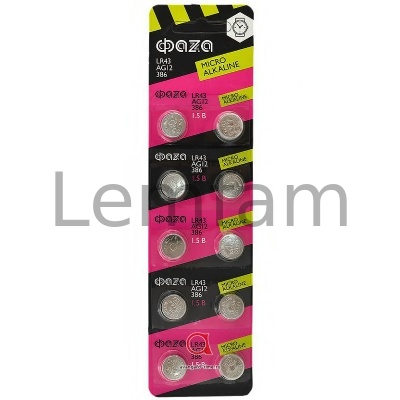 Элемент питания ФАZA AG12/LR43/186/GP86A/386/SR43W 1.5V (цена за 1 элемент питания) в